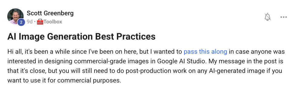 #7 AI image generation best practices - Scott Greenberg shares practical guidance on designing commercial-grade images in Google AI Studio. The honest take: AI image gen is close, but post-production work is still needed for commercial use. Real-world insights that save time and set proper expectations. Some revelations + best practices for you.