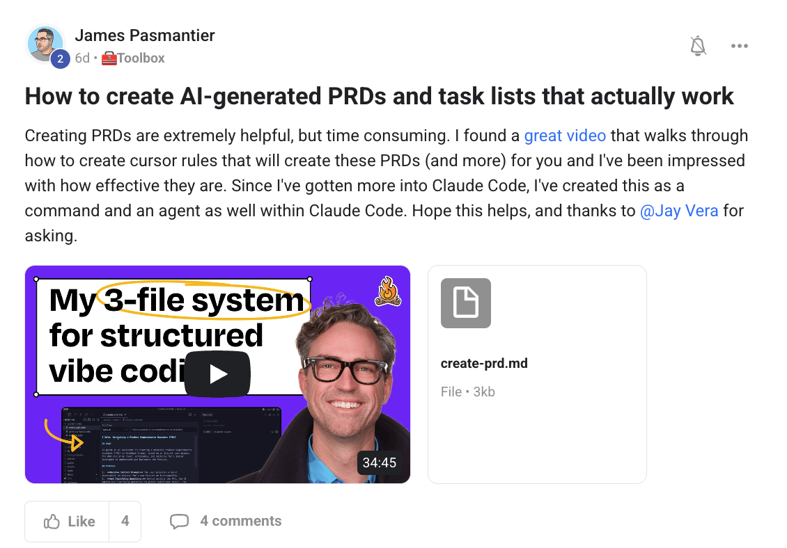 PRD = Product Requirements Doc. Sounds corporate. But here's what it actually does: it forces you to be clear about what you're building before you build it.