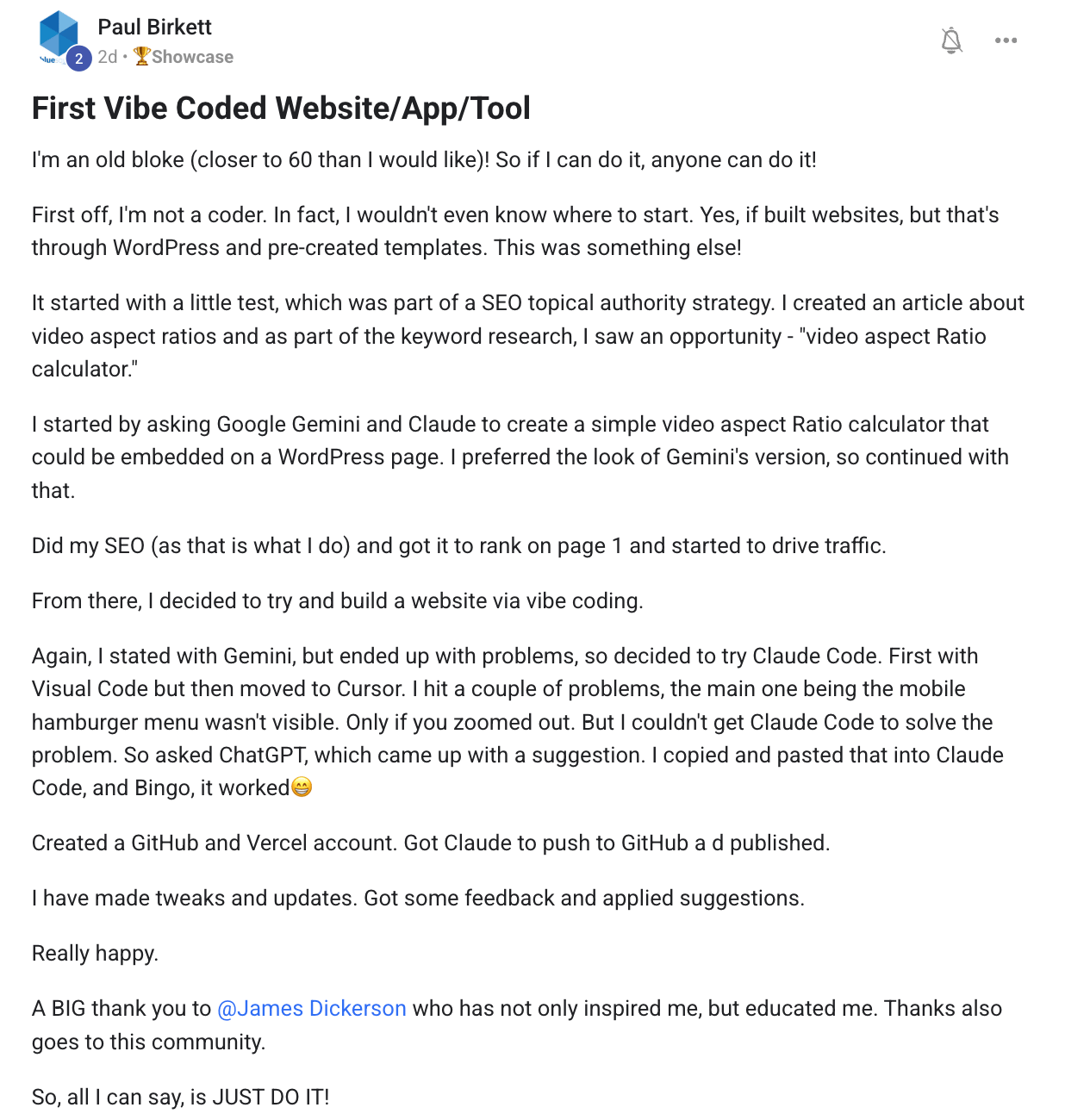 Someone who is a first time vibe coder building a tool (how cool is that?):