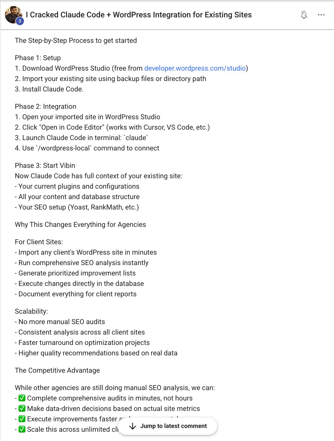 Sourabh Band, one of the vibe marketers community members cracked the wordpress + claude code mystery.