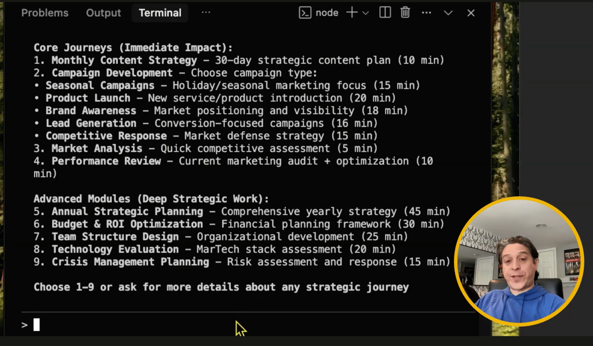 It generated blog posts, social sequences, email drip campaigns, and even visual briefs—organized into a master implementation guide.