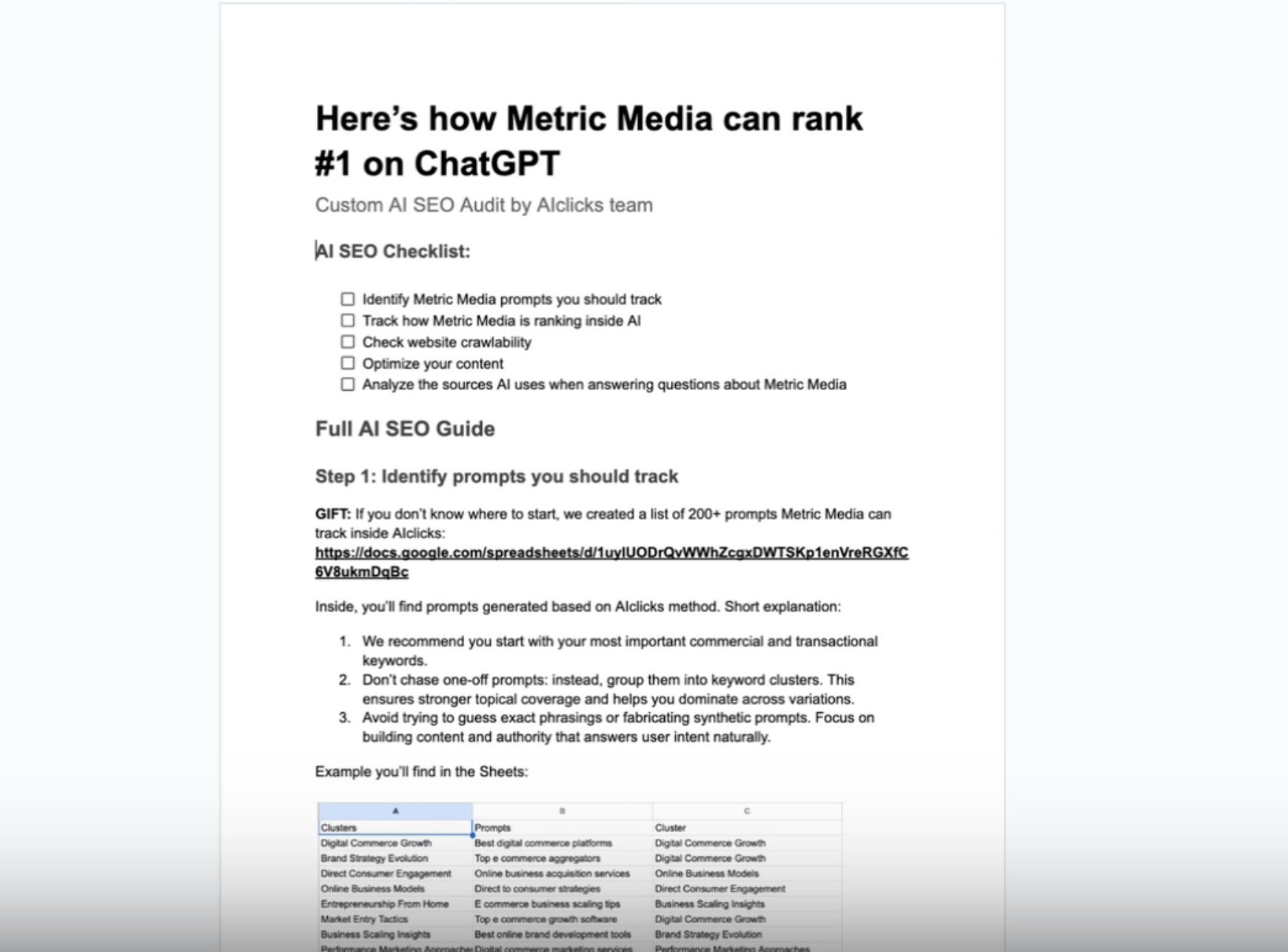 All wrapped into a clean, branded 4–5 page Google Doc