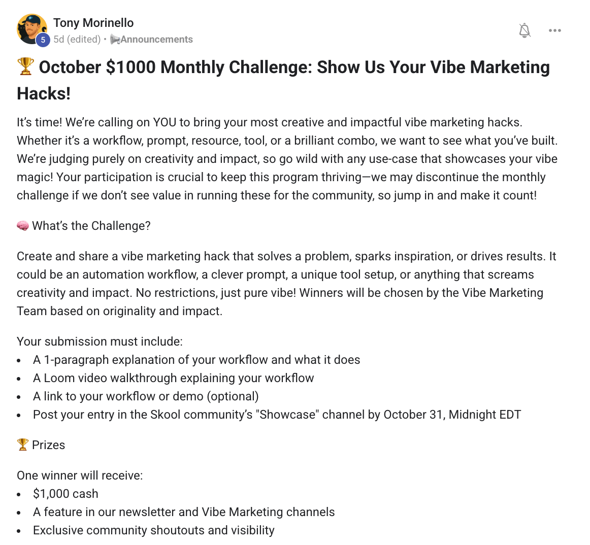 We are opening the stage to the community again.The next challenge is live. If you have been experimenting with workflows, agents or prompt libraries that can move the needle, this is your chance to shine.